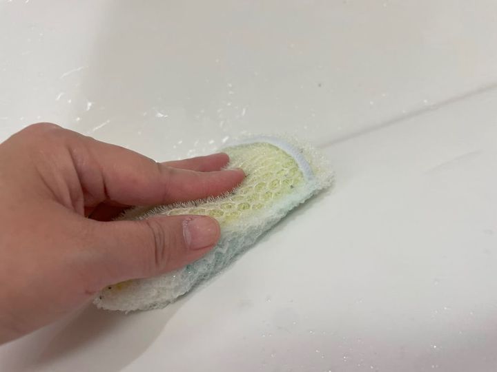 石けんが入っているので、2,3回くるくると小さく円を描くように動かしながらスポンジでこするだけで、とってもきれいになりました!