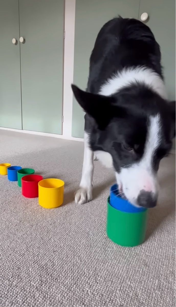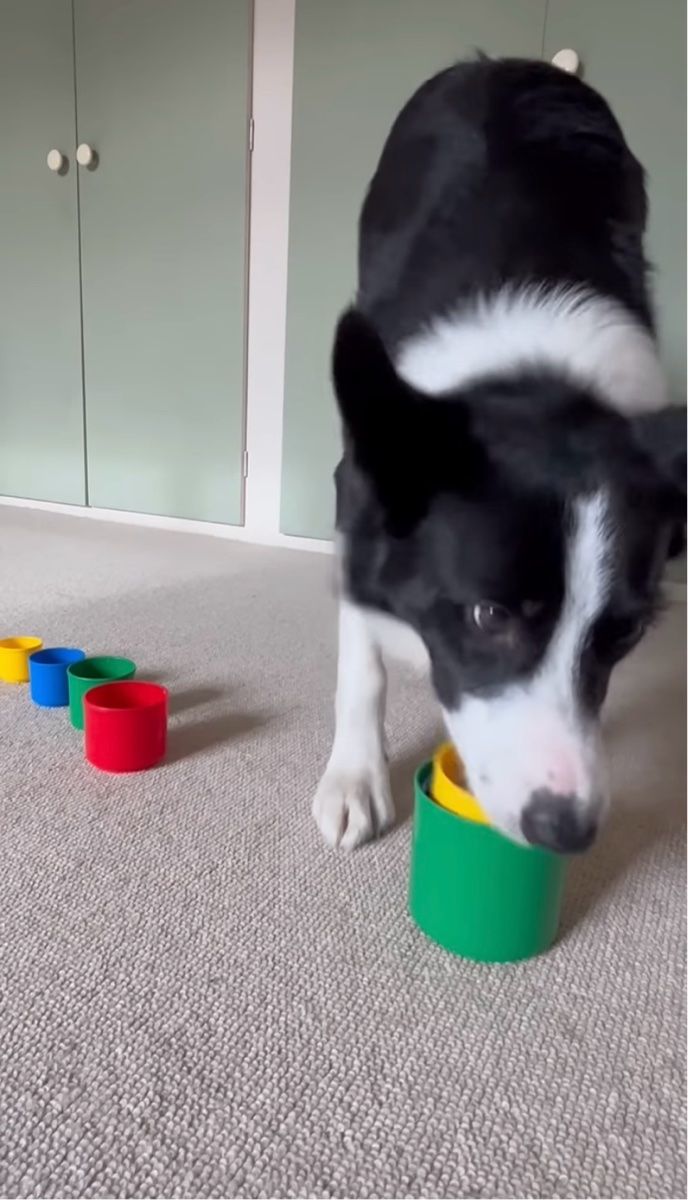 3. 賢いボーダーコリー。スタッキングカップを積み重ねるのはお手のもの!【海外・動画】