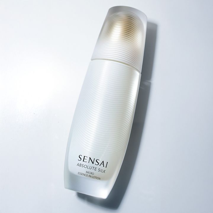 「微細なオイルが配合された化粧水なので肌馴染みがいい。肌の奥から潤いを感じます」。センサイ AS マイクロ エッセンスインローション 125 ml ¥14,300(カネボウ化粧品)