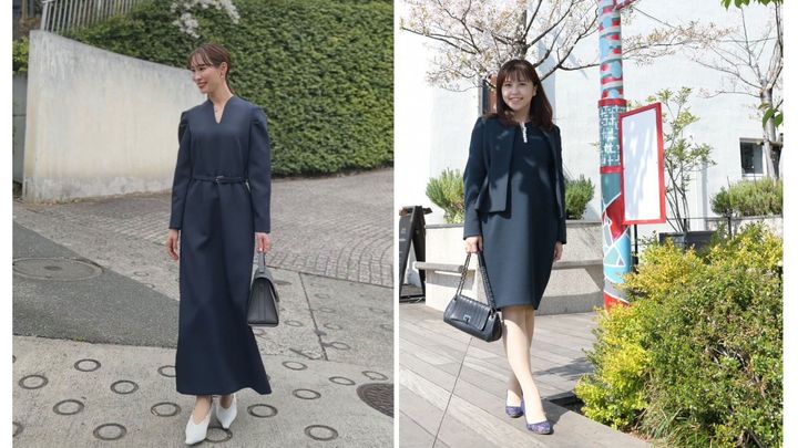 「学校の雰囲気を考え、ネイビーにまとめることは決めていました。セレモニー感が強いワンピースではなく、普段も着られるデザインを探していたところ、濃紺で襟元のカッティングとパワショルが一癖あるものを見つけました。長時間座ってもシワになりづらい素材だったのもよかったです」小田原絵里奈さん/37歳・164㎝(7歳の女の子ママ)