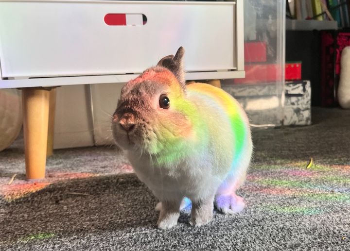スーパースターで無敵に?レインボーうさぎに7.1万いいね「ゲーミングうさぎ」「無敵状態」