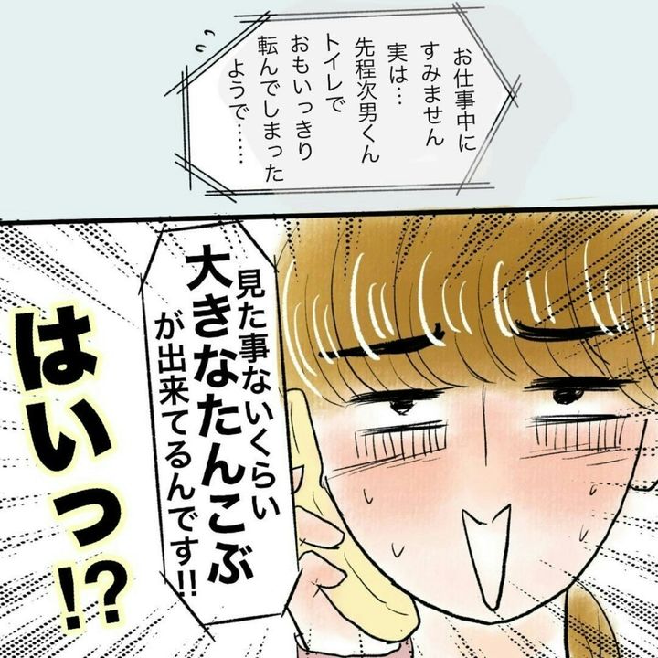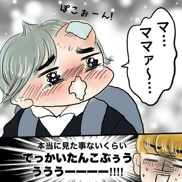小学校からの電話で、あわてて次男を迎えに行ったArareちゃんさん。すると、電話で聞いていた通り、本当に大きなたんこぶができた次男の姿が…。
