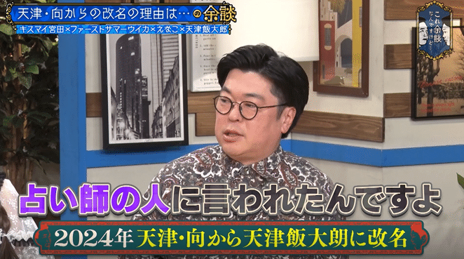 なお、この天津飯大郎の改名エピソードは、2月26日に放送されたバラエティ番組『これ余談なんですけど・・・』(ABCテレビ)で明かされた。