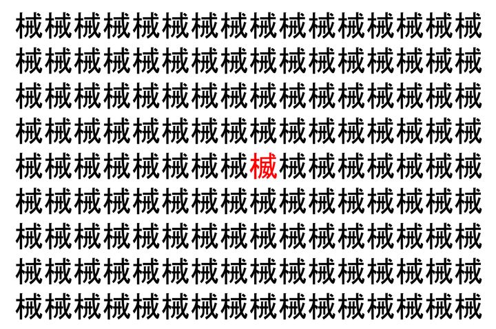 画像の中には、「械」という漢字が縦に9行、横に16個並んでいます。 全部で144個となりますが・・・、そのうち1つは「異なる漢字」となってますよ!!