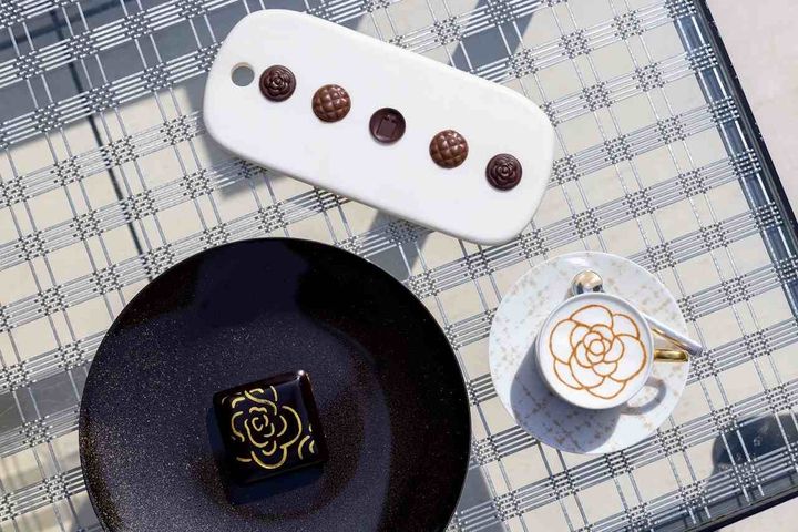 注目は、1つ星フレンチレストラン「ベージュ アラン・デュカス 東京」のコースでしか味わえないシグネチャーデザート「カレ・シャネル」が昨年に続き楽しめること。なかでも、連日絶え間なく行列ができた人気のティータイムセット「カメリア」は、カレ・シャネルに加えてカメリアやマトラッセなどをモチーフにしたショコラを、コーヒーや紅茶、ハーブティーなどとともに堪能できます。