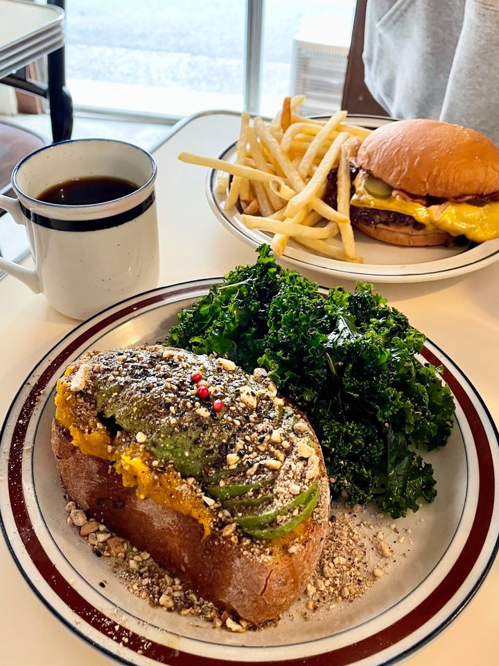 サイドに野菜がたっぷり添えられ、丁寧に焼き上げられたハンバーガーや、アボカドがたっぷり乗ったオープンサンドなど、
