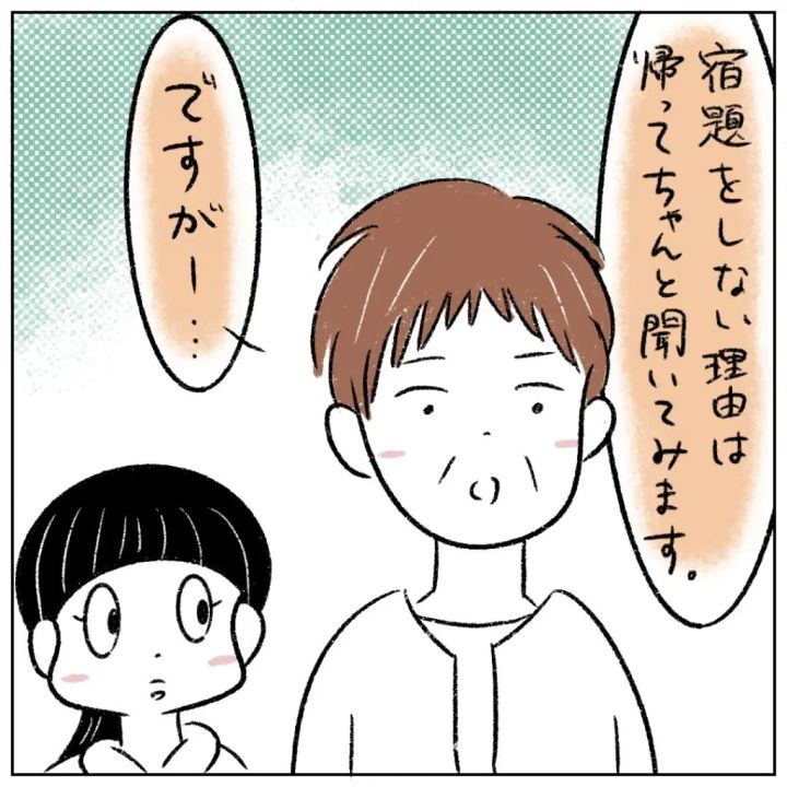 お母さんは「宿題をしない理由は帰ってちゃんと聞いてみます」と言った後、「ですが・・・」と続けました。