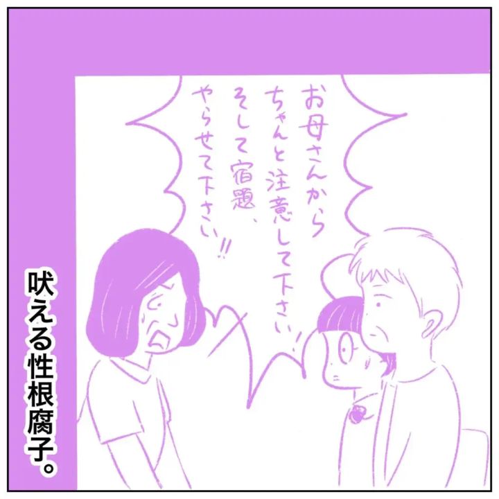 「お母さんからちゃんと注意して下さい!そして宿題ちゃんとやらせて下さい!!」と声を荒げる性根先生。