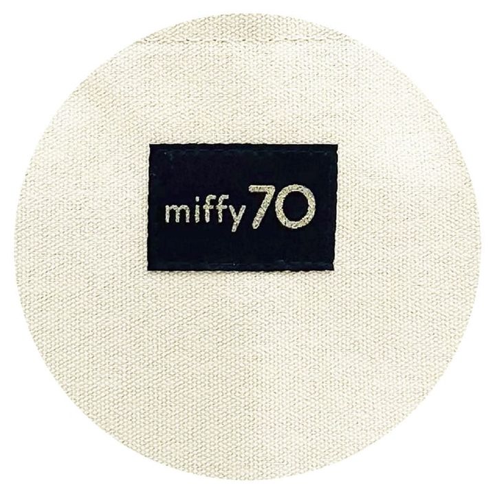 サガラ刺繍のミッフィーがついたトートバッグ。裏面にはミッフィー70周年のロゴのワンポイントも。ゴールドがモチーフのデザインで、特別感あふれるデザインです。
