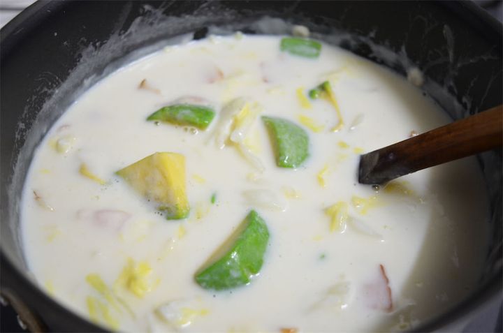 アボカドは変色しやすいため、切ったらすぐにシチューに加えてください。