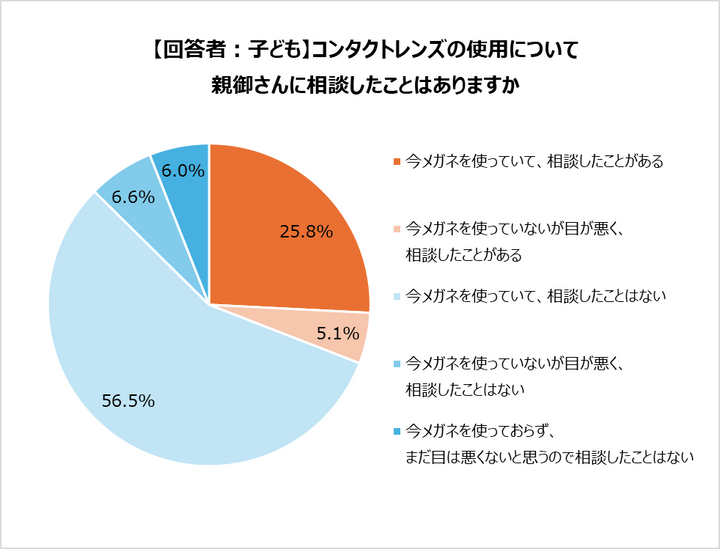 一方、親にコンタクトレンズの使用を相談したことがある子どもは約30%にとどまっているようです。