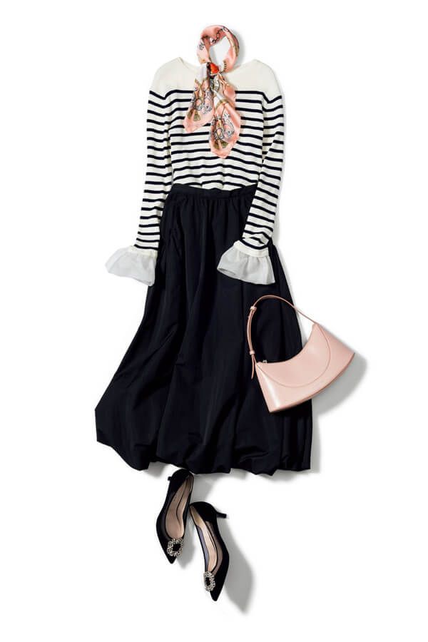 [ニットソーを着回し]スカート¥13,200/ココ ディール スカーフ¥1,100/神戸レタス バッグ¥10,900/CHARLES & KEITH 靴¥19,800/ダイアナ(ダイアナ 銀座本店)