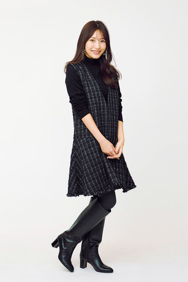 冬のトレンド服を着用したときの印象をひたすら見える化!低身長156cmの伊藤渚さんと、高身長168cmの門脇伶奈さんが同じアイテムを着比べ。今回は、ロングブーツのコーデを身長別に提案。