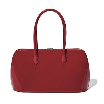 エナメルバッグ(17×31×12)/VASIC(ヴァジックジャパン) ソフトな服の抑揚づけに好都合なつるっとしたツヤ感。トレンド感のある肩がけしやすい長めハンドル。開口部分はがま口仕様で使いやすさも申し分なし。