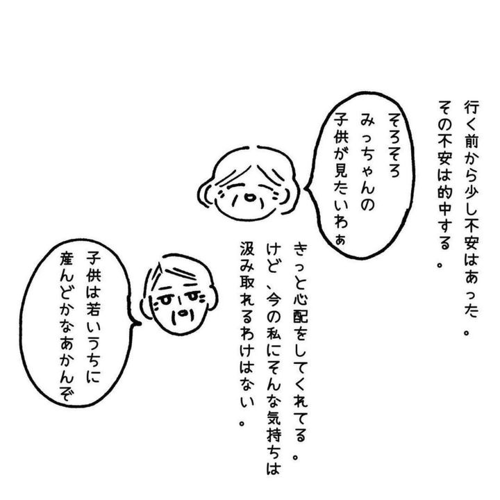 流産したことを両親に話せずにいた、さし身さん。そのため、周囲もさし身さんの事情を知りませんでした。悪意がないとはいえ、この状況で周囲からの「子どもはまだ?」という言葉はツラかったでしょうね…。