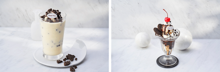 プリンベースのドリンクに、ココアクッキーを混ぜ込んだミルクスムージー。