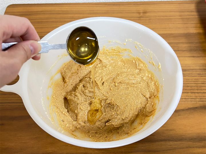 よく混ぜたら、次は蜂蜜を入れて、また混ぜます。