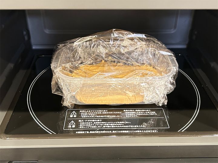 6.5を電子レンジで加熱します。加熱時間は500Wの場合4分、600Wの場合は3分20秒程度に設定してください。