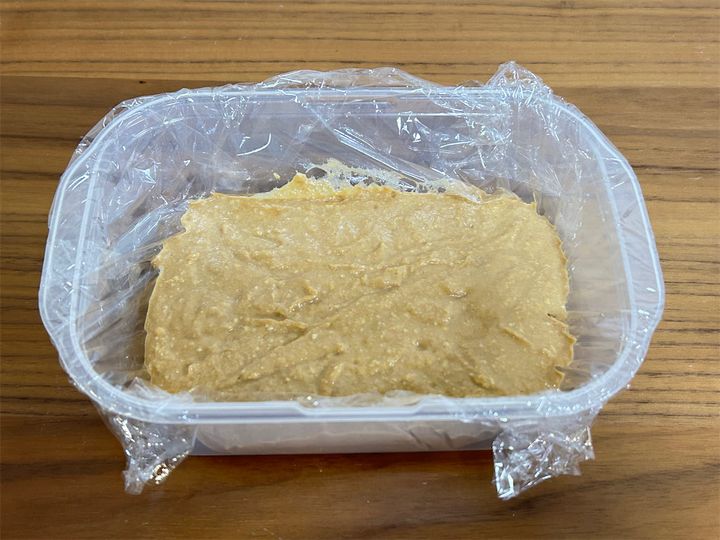 ラップはできるだけピッチリと、底にしわが寄らないように敷くことで、焼き上がったときの見た目がきれいになるそうです。