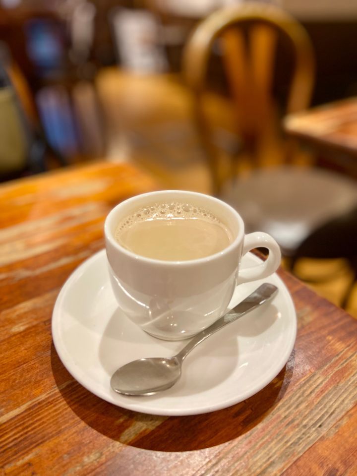 ドリンクは【ミルク珈琲380円】を注文。私の大好きなコメダのミルク珈琲と少し似ていて、朝にぴったりなミルクたっぷりのマイルドな味。