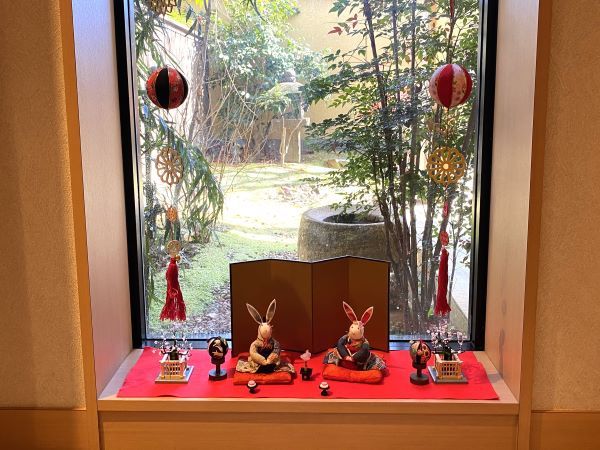 ひな祭りを控えた時季だったので、店内にはさりげなくひな飾りが置かれていました。