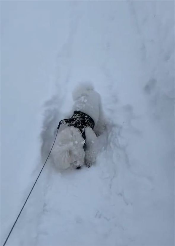 3. 散歩が進まない!雪にはしゃぎまわるビションフリーゼに「喜びすぎー」「たまらなくかわいいです」
