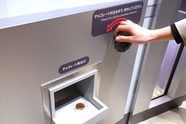 エリア内には、ハンドルを回すとチョコレートが出てくるサプライズ的な一角も。ゲームは簡単な操作のものが多いとはいえ、体を使うものが多いので、ここで糖分を補給できるのは素直にうれしい! もちろん味は抜群です◎