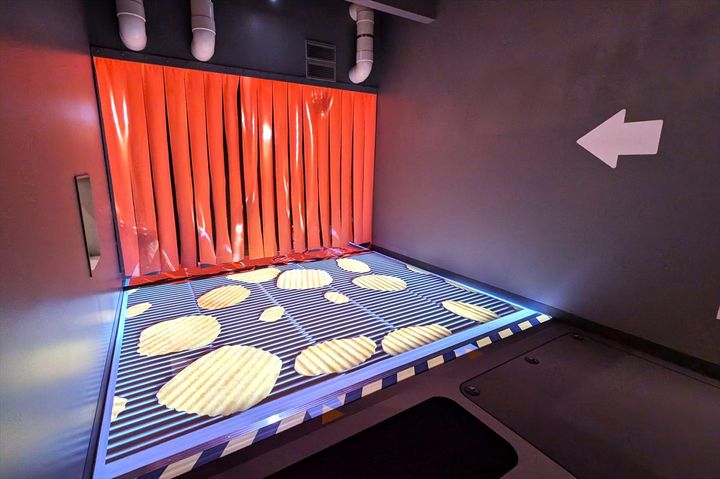 ロイズの大人気商品「ポテトチップチョコレート」の製造ラインをテーマにしたブースももちろんあります。ゆっくりと流れるポテチたちと一緒に、チョコレートのカーテンをくぐるなんてここでしかできない体験! 写真映えもめちゃくちゃしそう。
