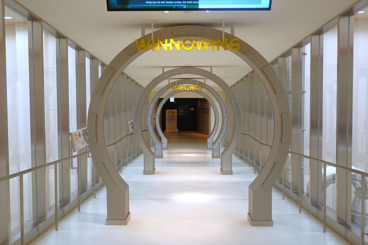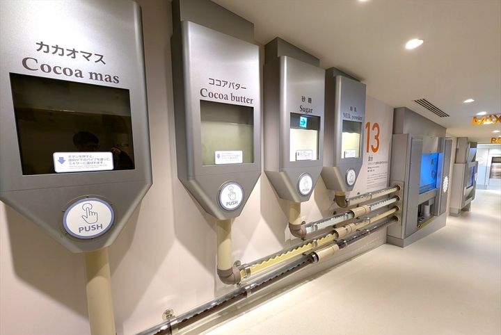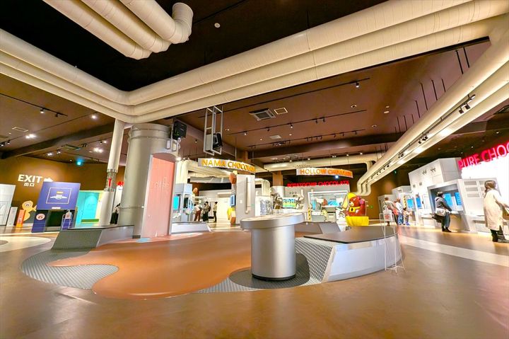 工場のパイプラインなどをイメージした道をはじめ、触れて楽しめる展示の数々はまるでチョコレート工場をテーマにした某映画作品のよう。しっかりと解説がありながらも、興味を引かれる内容ばかりで、大人でも胸がワクワクと高鳴ること間違いなし!