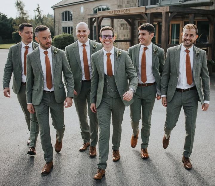 欧米のウエディングでは、ブライズメイド同様に、新郎側にもアッシャーが任命されますから、新郎をはじめ、アッシャーたちにもネクタイやポケットチーフで「モカムース」を演出してもらえます。