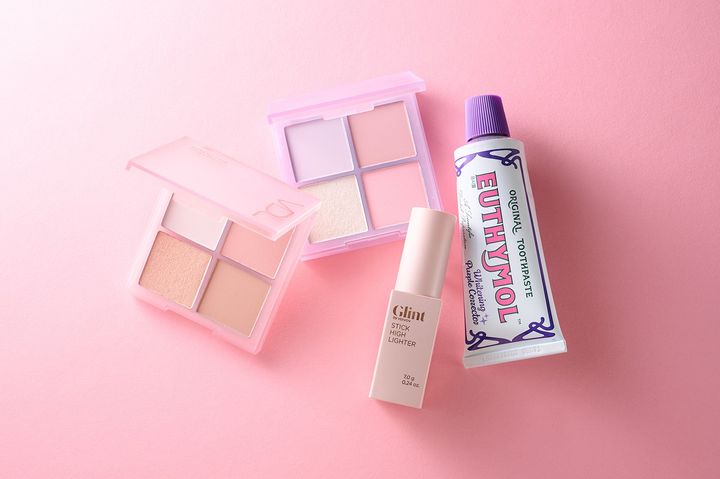 <写真左>今っぽ韓国肌になれるマルチチークパレット。単色でも混ぜても使える万能品で自然な血色感が作れます。