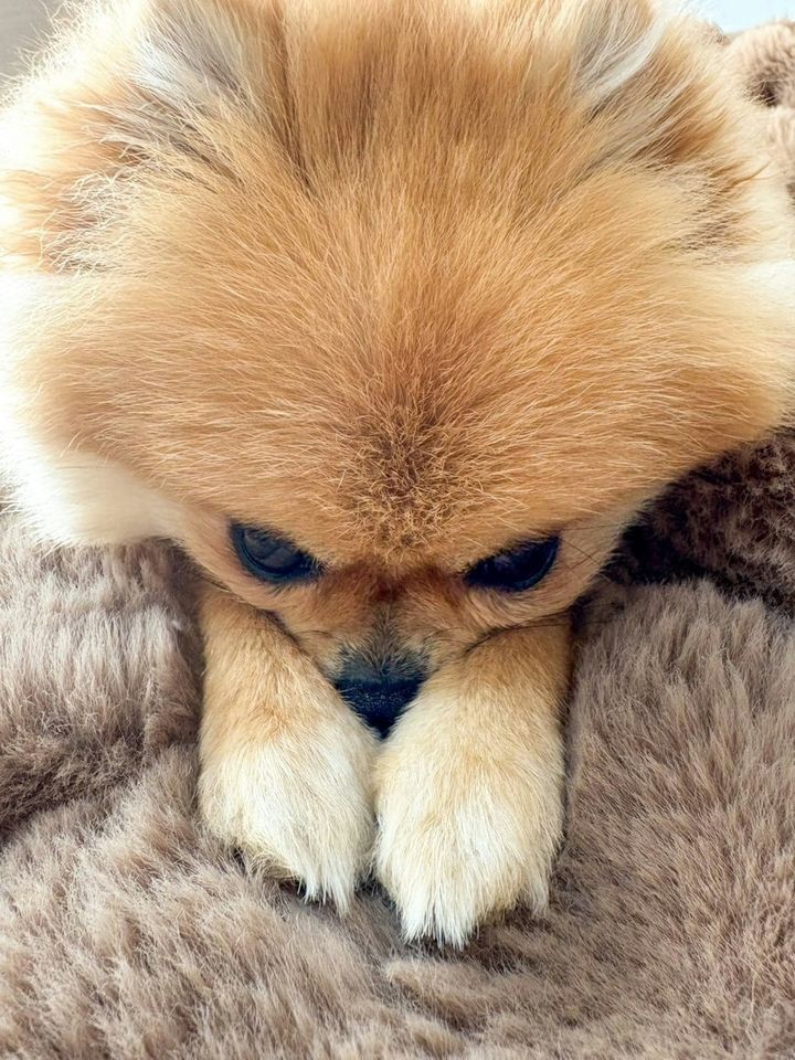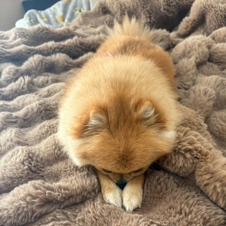 お鼻が寒い~!自力で温めるポメラニアンに2万いいね「あざとい!」「おててそろえてかわいい」