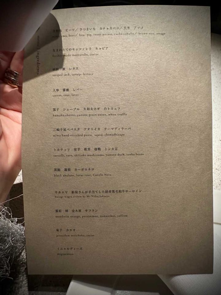 「薪火はその日の天候や湿度によって表情が変わる。だからこそ毎回違う一期一会の味わいが楽しめるんです」と語る堀田シェフ。まさにその日のためだけに用意された“スペシャルメニュー”。季節の移ろいに合わせて少しずつ変化するメニューがとても気になります。リピートするお客様が多いのも納得。