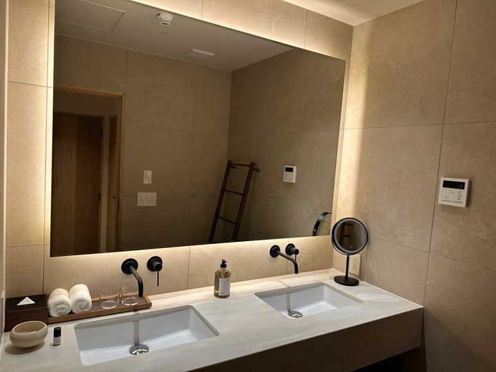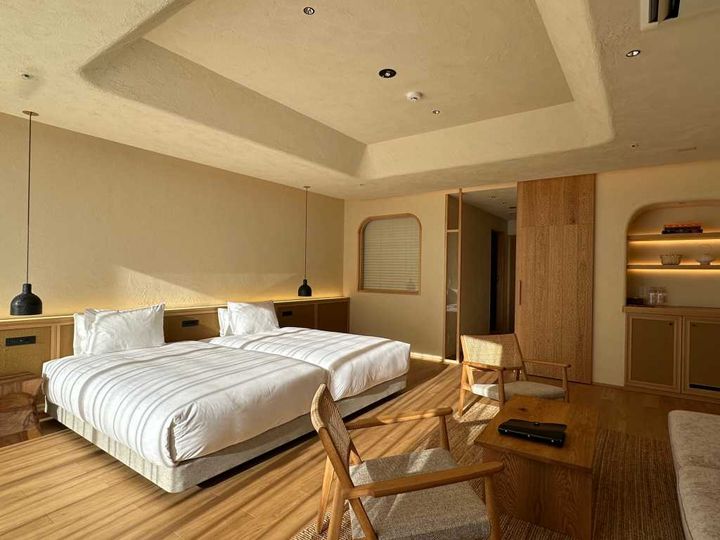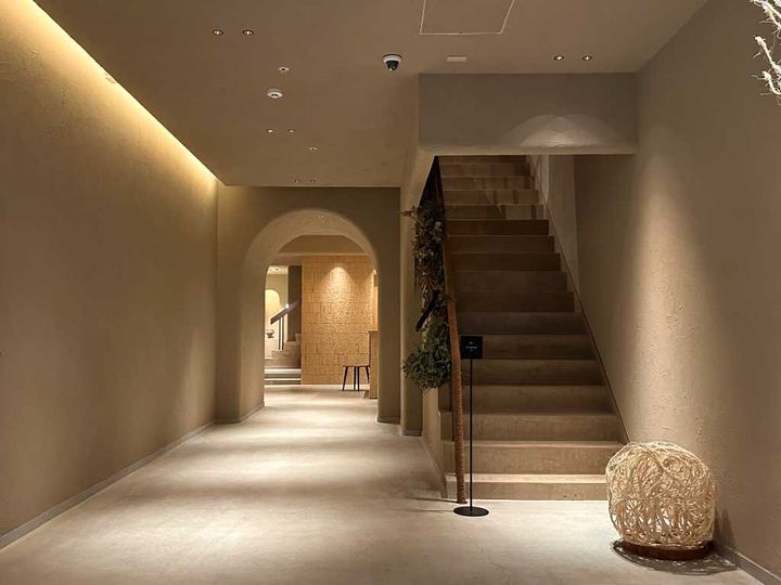 「VILLA COMMUNICO」へは、近鉄奈良駅から車で約7分。東大寺を眺めながらゆったり散策しつつ若草山方面へ徒歩で向かうのもおすすめです。歴史ある土産屋だった古民家を改修した建物は、外観に当時の面影を残しながらも、中へ一歩足を踏み入れると驚きの空間。和とも洋とも言えないような空間で、手塗りの壁や温かみのある天然木、地元アーティストが手がけた装飾品が織りなす内装は、どこか懐かしくも洗練された趣。心がじんわりと包まれるような温もりを感じました。