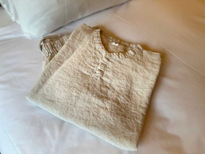 センスの良いナイトウェア。着心地のいい独特の風合い。