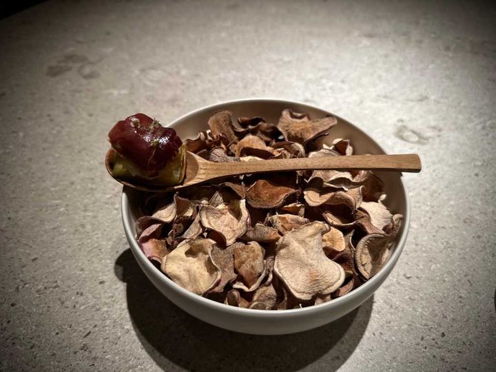 驚いたのは、登場する料理が薪火のダイナミックさと反して、とても繊細なこと。見た目も味わいも想像をはるかに超えるものばかりで、前菜からデザートまで驚きと感動の連続でした。薪火使いにこだわりつつも、発酵や熟成といった技法も巧みに取り入れた料理。素材そのものの味わいも大切に、細やかに手をかけて調理されているのを感じました。
