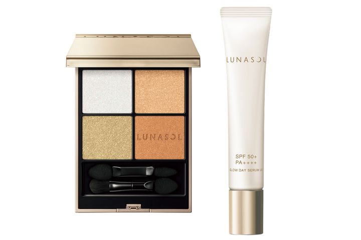 (左)ルナソル アイカラーレーション N 04 12℃ signs of spring ¥7,700(1/24発売)(右)ルナソル グロウデイセラムUV 全1種 SPF50+・PA++++ 30g ¥5,280(3/7発売)(ともにカネボウ化粧品)