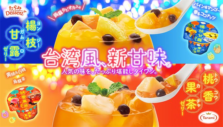 その第1弾として、台湾で人気のスイーツやドリンクをゼリーで再現した「楊枝甘露ゼリー」「桃香果茶ゼリー」が、3月1日(土)より発売されます。