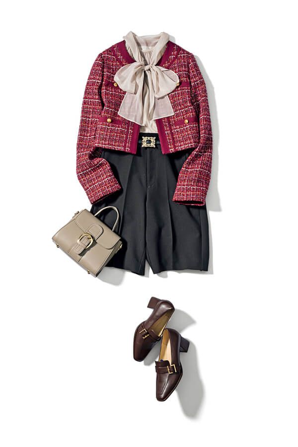 センタープレスのきれいめショーパンがツイードJKと相思相愛