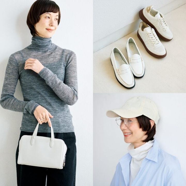 3. 【50代のおしゃれ】“効かせる白”で魅力的に着こなしの鮮度が上がる白小物