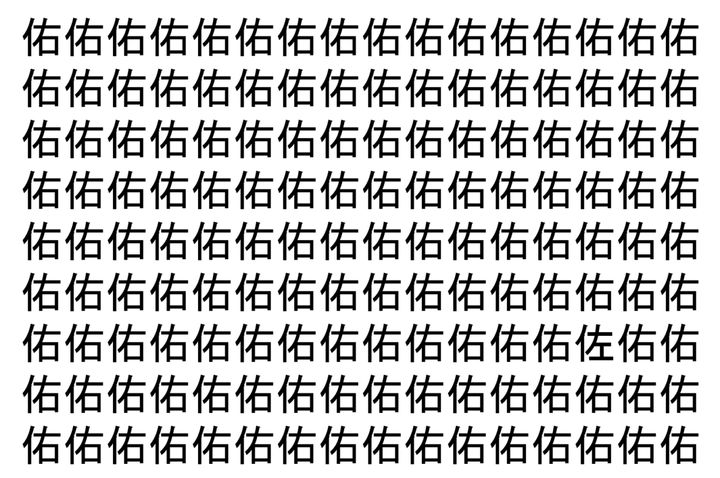 【脳トレ】「佑」の中に紛れて1つ違う文字がある!?あなたは何秒で探し出せるかな??【違う文字を探せ!】