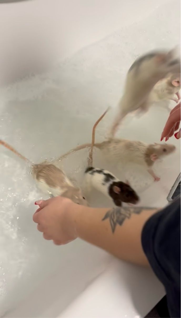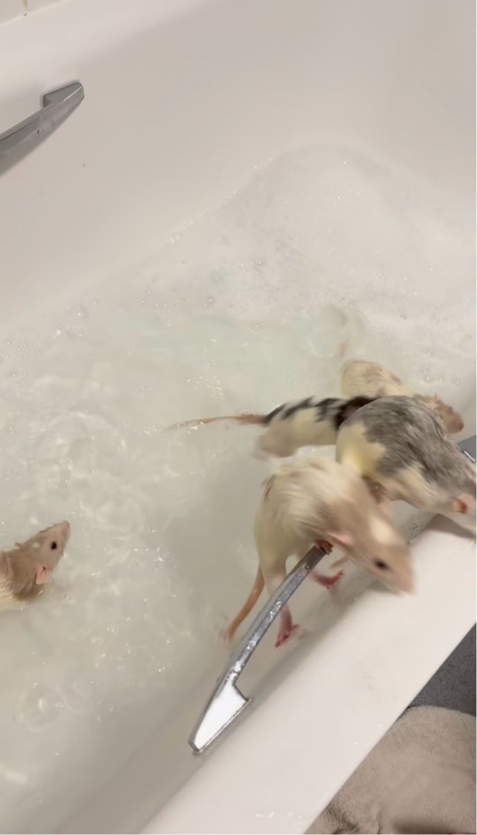 イギリスのイングランド・オックスフォードのとあるお宅で撮影されたこちらの動画には、ネズミたちの入浴中の様子が収められています。