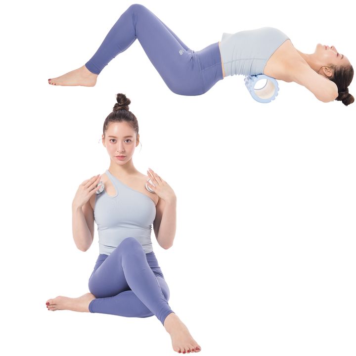 ストレッチポールやボールで、背中や脇、鎖骨周りを重点的にほぐす! 柔軟性を高めて血流をUPさせ、老廃物を溜めない体に。