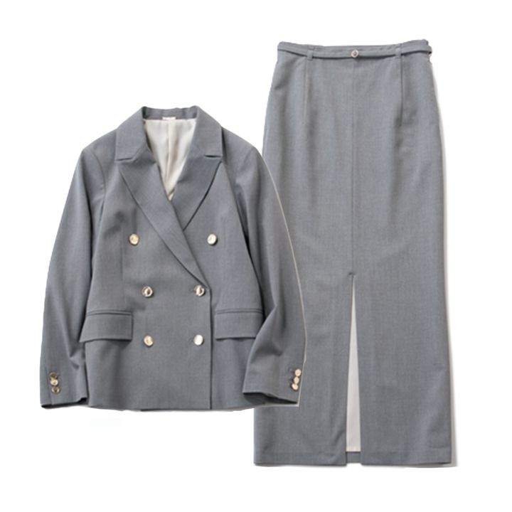 ハンサムなグレーセットアップ。この春はタイトスカートで取り入れるのがカギ!ジャケット¥17,930スカート¥13,200(ともにSNIDEL)
