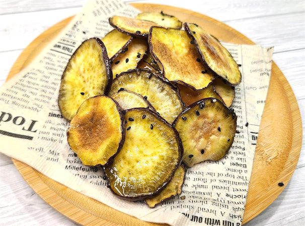 このオイリー感で…油は一滴も使わないって!?【材料3つ×レンチン5分】で「さつまいもチップス」出来た!