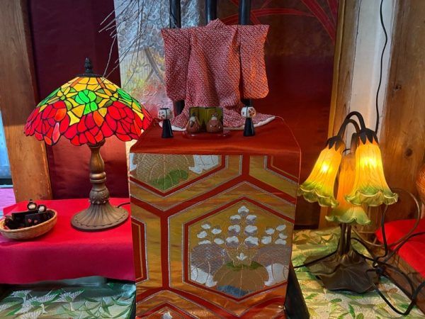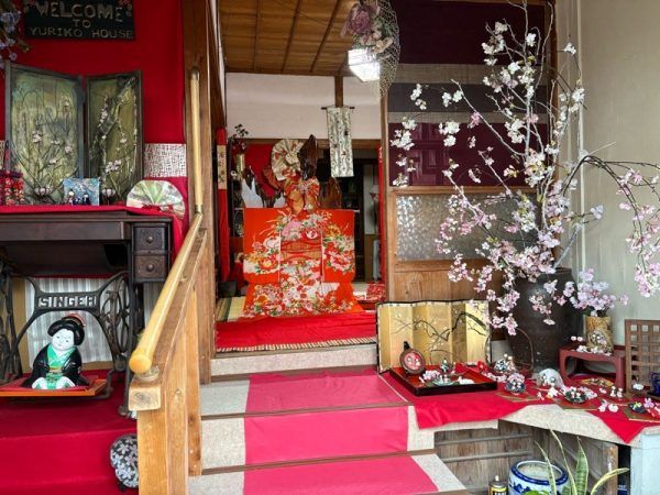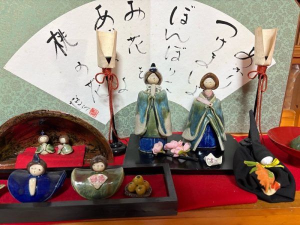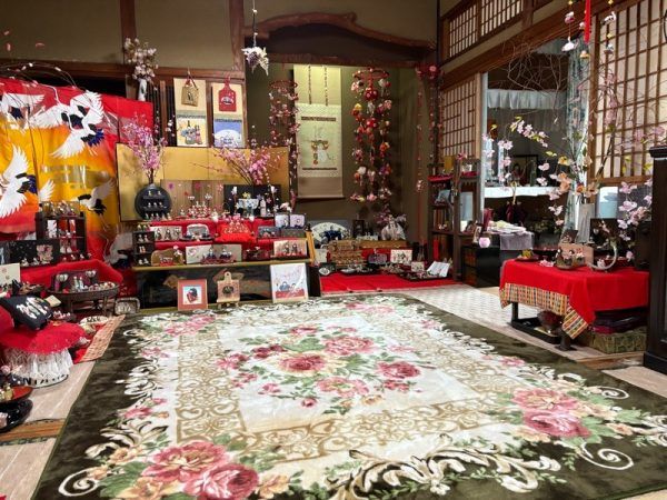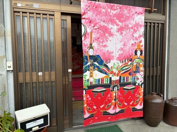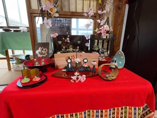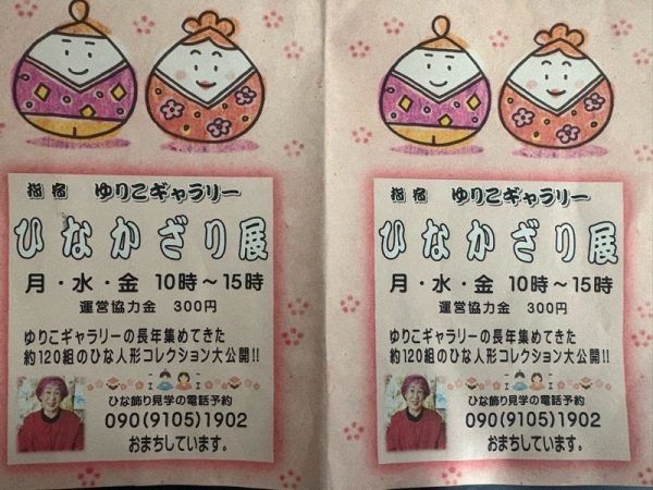 「ゆりこギャラリー」の入り口は、雛人形のタペストリーが掛けられていて、到着するなりひな祭りの気分です。