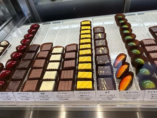 ショーケースの中には、一粒一粒丁寧に作られたこだわりのフレーバーのチョコレートが並んでいます。