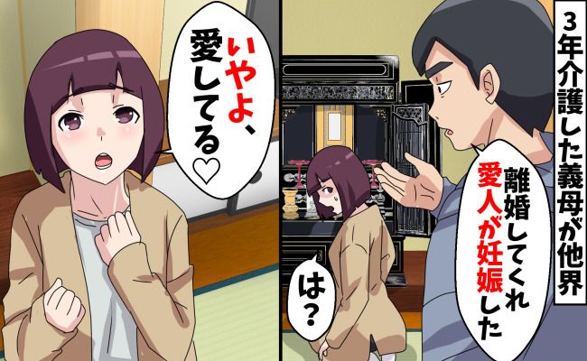 同居から3年、とうとう義母が他界。ようやくゆっくりできると思っていた私。しかし夫から「母さんもいなくなったことだし、これからはお互い自由にやっていこう! 恋人が妊娠したから離婚してくれ」と衝撃の告白が!