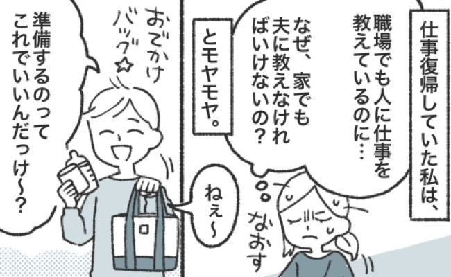 私は産後3カ月で仕事復帰したのですが、人に教える仕事をしながら、なぜ家でも夫にいろいろ指導しなければならないのか……と思うように。夫は育児において、何かをするごとに「これでいい?」と聞いてくるのです。聞かれることはすべて、前に教えたことばかりで、「いい加減にしてほしい」と怒りが頂点に達した私。