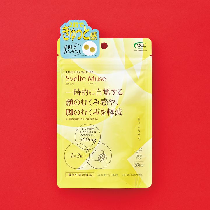 2.むくみ軽減のほか、褐藻抽出物配合で塩分量をコントロールし、めぐりもサポート。60粒入り 約30日分 ¥2,980(キューオーエル・ラボラトリーズ)